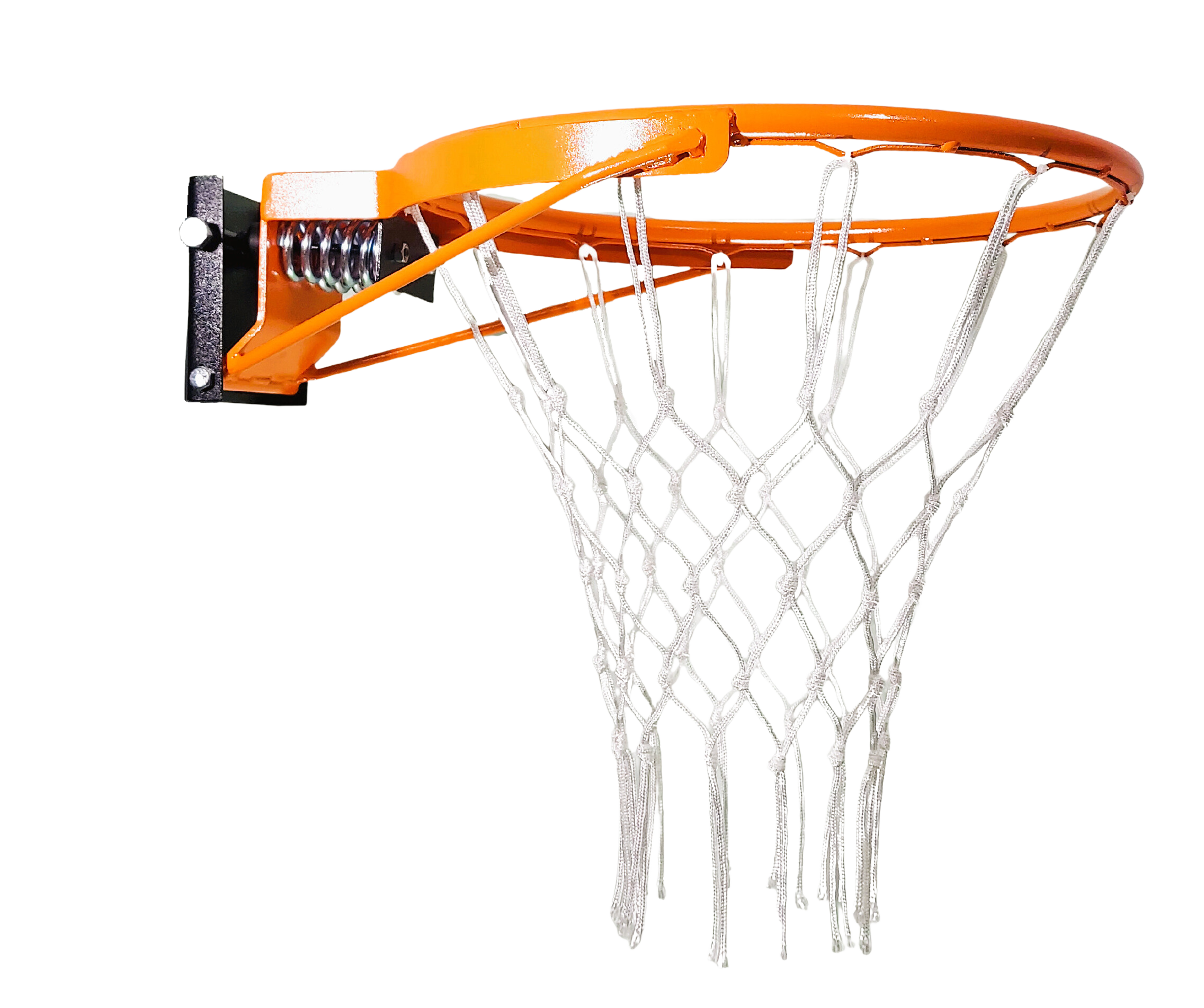 Aro de basquete oficial de molas, próprio para enterradas e muito resistente, com design moderno e de fácil manutenção.